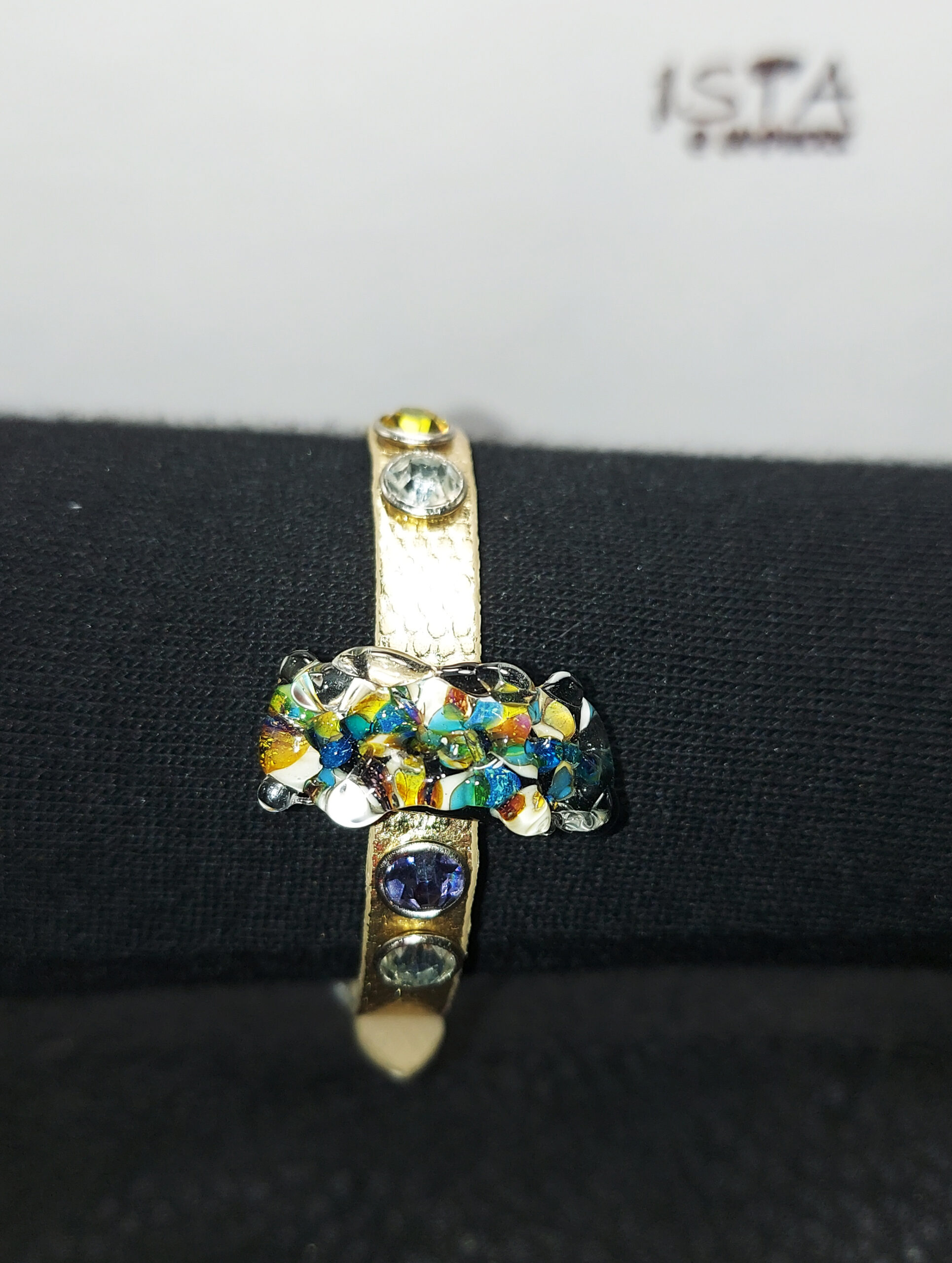 Designer beads with a flat hole that allows you to move the bead around the bracelet.